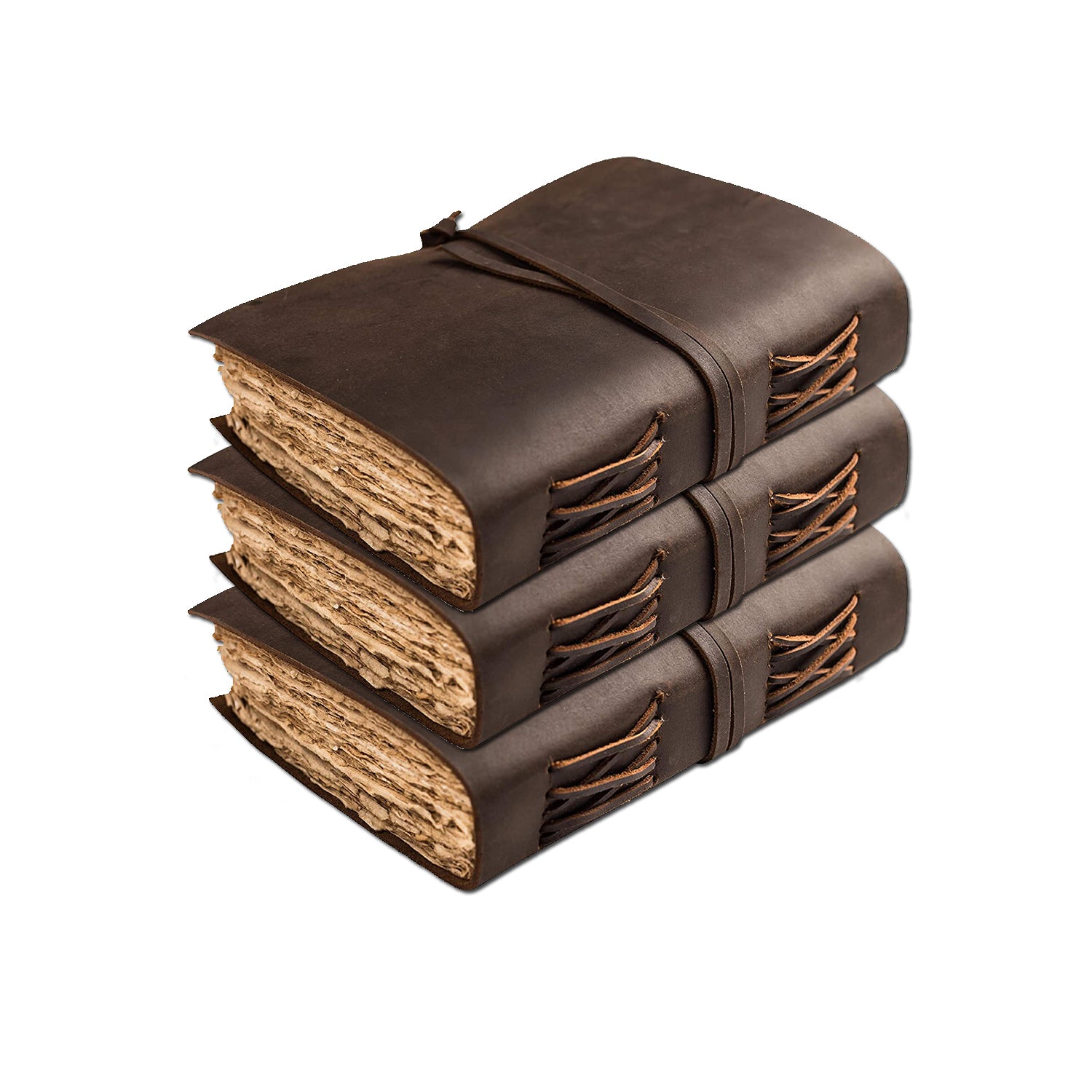 Charcoal Brown Leather Journal - 9 by 6 Inches - 3 Pack