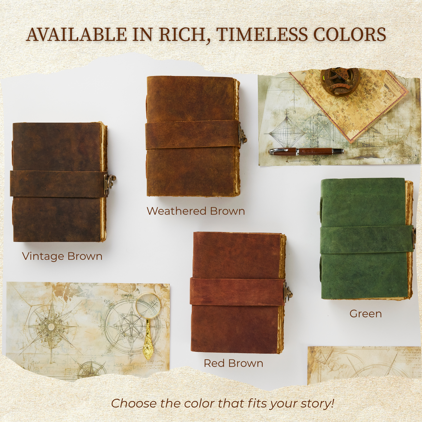Capture your thoughts, dreams, and sketches in a truly unique way with the NomadCraftsCo. Vintage Leather Journal. Each page of this 7x5-inch journal is handmade with antique cotton paper that looks like it was pulled straight from history. Perfectly compact and travel-friendly — your next adventure begins here.
